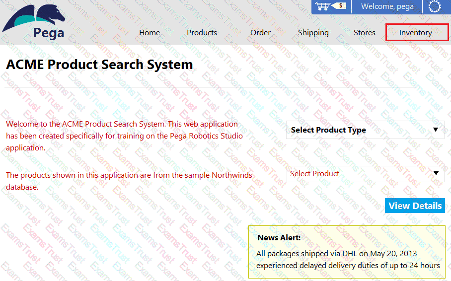 As a new development requirement, you must disable the Inventory link as shown in the following image. The Inventory link must be available only to the Store Managers user group. The user group validation is already developed, and the web application has already completed interrogation.