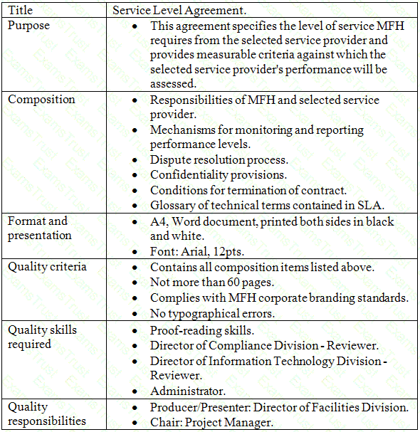 Using the Product Summary and Product Breakdown Structure provided as additional Information for this question In the Scenario Booklet, answer the following question.