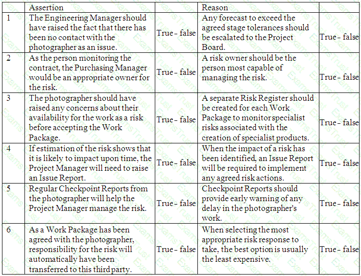 The Engineering Manager was made aware of this requirement but when asked he reported that he has received no communication from the photographer. The Project Manager has tried to call the photographer and has had no response. The Project Manager believes there is a risk that Portraits Ltd are overbooking work and prioritizing other clients' work. If Portraits ltd do not deliver on schedule the project will be delayed and the expected benefits will be reduced.