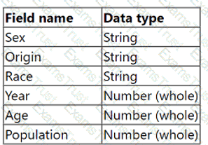 You need to shape the data in US Population Estimates by using Tableau Desktop. The data must be formatted as shown in the following table.
