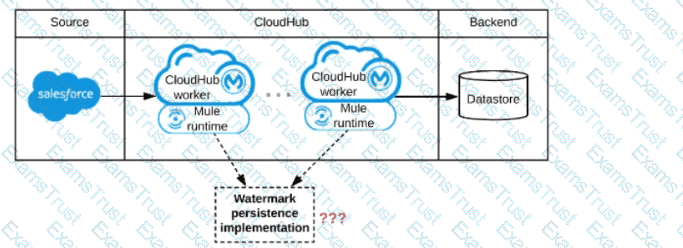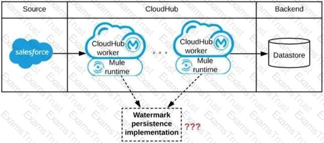 A Mule application is being designed to be deployed to several CIoudHub workers. The Mule application's integration logic is to replicate changed Accounts from Satesforce to a backend system every 5 minutes.