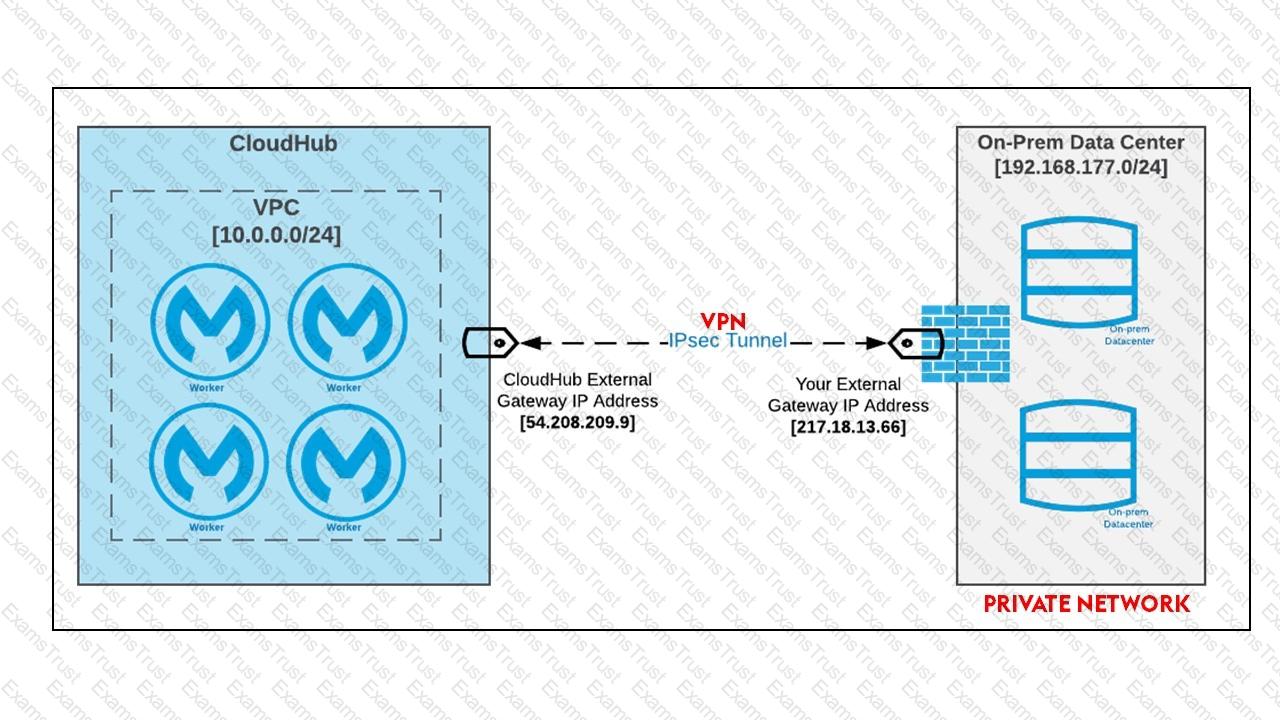An Organization has previously provisioned its own AWS VPC hosting various servers. The organization now needs to use Cloudhub to host a Mule application that will implement a REST API once deployed to Cloudhub, this Mule application must be able to communicate securely with the customer-provisioned AWS VPC resources within the same region, without being interceptable on the public internet.