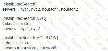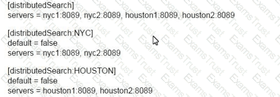 How would you configure your distsearch conf to allow you to run the search below? sourcetype=access_combined status=200 action=purchase splunk_setver_group=HOUSTON
