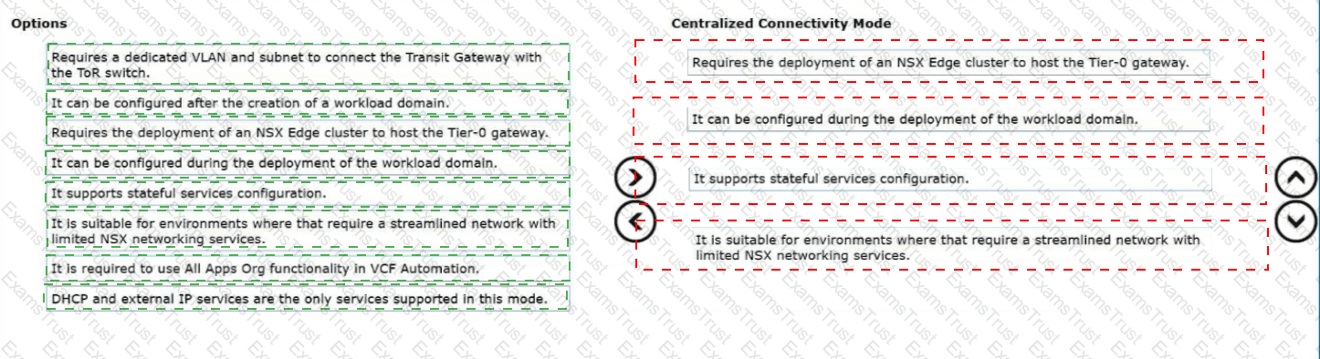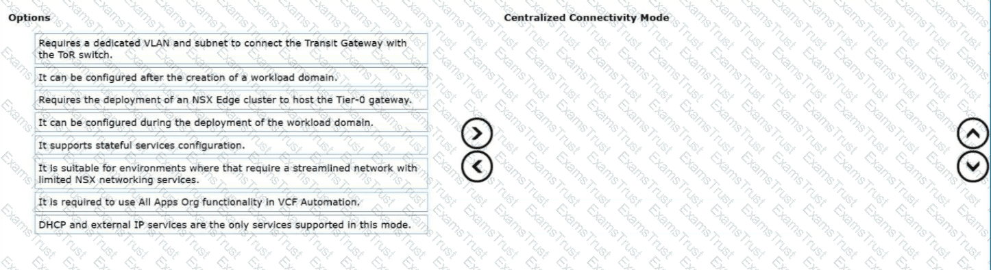 Drag and drop four options from the Options list on the left and place them into the Centralized Connectivity Mode on the right in any order. (Choose four.)